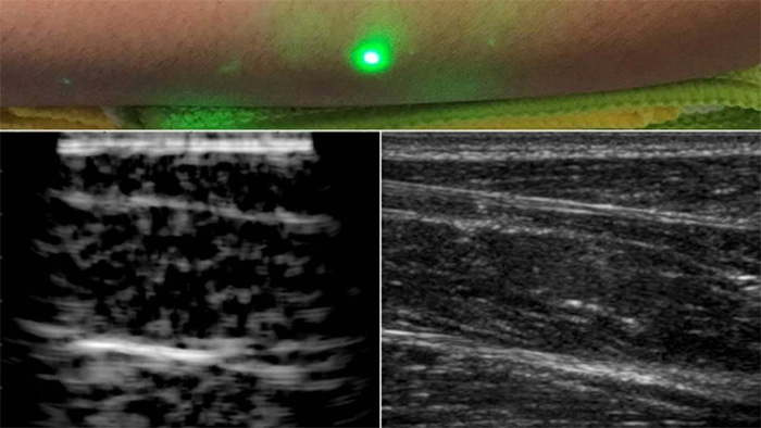 現(xiàn)在,麻省理工學(xué)院的科學(xué)家們找到了一個解決方案;他們已經(jīng)開發(fā)了一種新的激光超聲波技術(shù),一種不需要與身體接觸就能看到病人內(nèi)部的超聲波技術(shù)。該方法利用對眼睛和皮膚均安全的激光系統(tǒng)遠(yuǎn)程成像人體內(nèi)部。